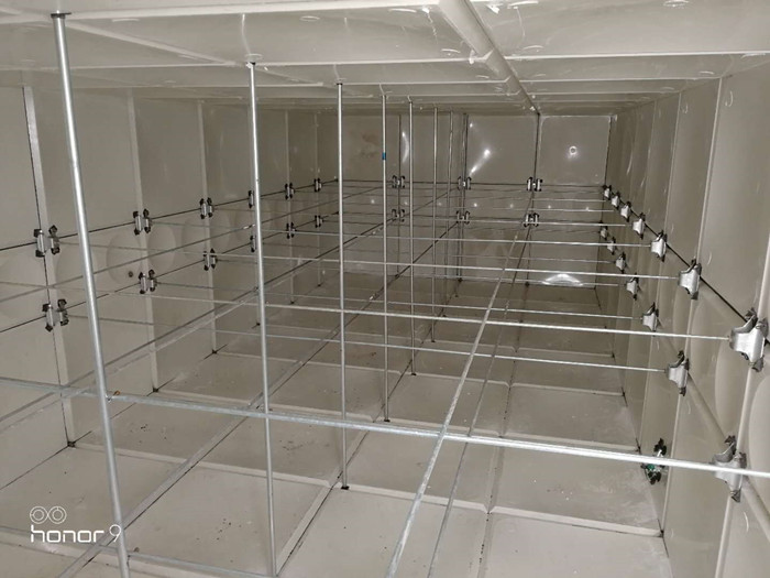 玻璃鋼水箱內拉筋簡單說來就是拉兩邊的水箱板的,為了固定水箱,防止水箱里的水過滿了使水箱漲破,對水箱起著至關重要的作用。如果僅僅用水箱板和膠條組成我們需要尺寸的水箱,雖然不透水了,但是還不能盛水,因為盛水之后水箱會承受一個向外的張力,須加上拉筋系統受力,否則玻璃鋼水箱會形成一個高力矩體系,很容易撐壞。拉筋系統有圓鋼,內外拉筋板,對拉螺栓。